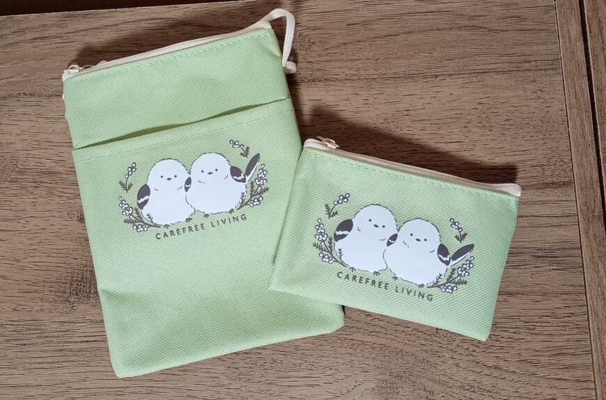 ショルダーバッグとセットで活用してもかわいらしいです。シマエナガ柄を楽しむことができます。
