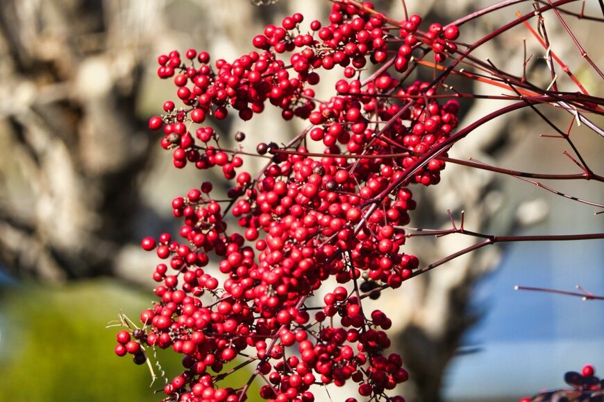 「難を転じる」に通じることから、ナンテンはお正月の縁起物植物として人気の植物です。濃い緑葉と赤い小さな実は洋風ガーデンにもぴったりで、クリスマスの装飾にも重宝します。