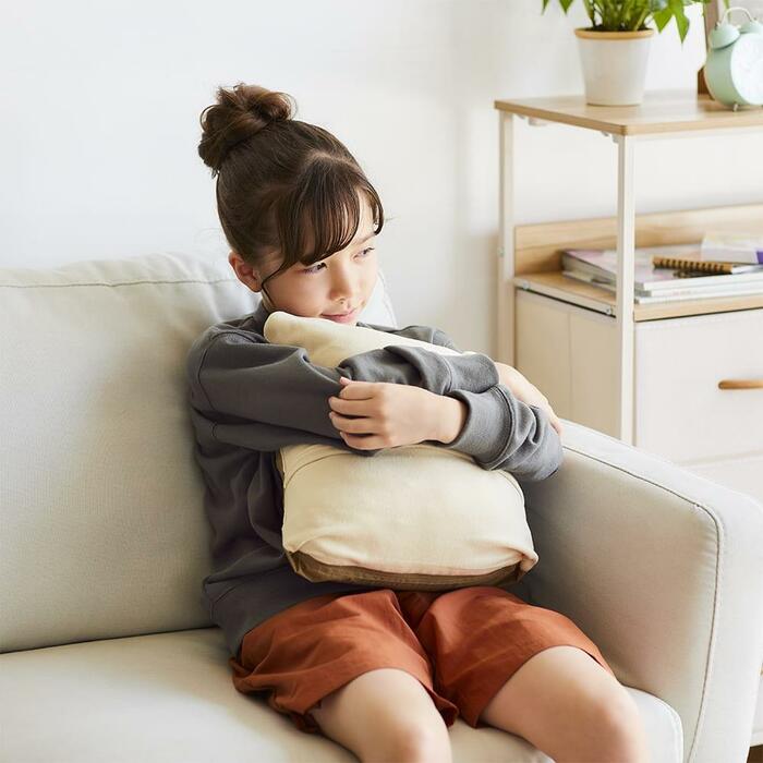 折り畳んで、ポケット部分に布地を収納すれば、クッションになります。クッションにすれば、冬以外の季節も使うことができそうです。1着で3通りの使い方ができるので便利です。