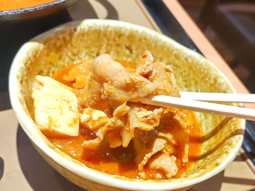 4種ブレンドした特製唐辛子パウダーから鼻を刺すような刺激的な香りがしますね。そしてグツグツと煮えた鍋からは湯気も立っており、体が温まりそう…。