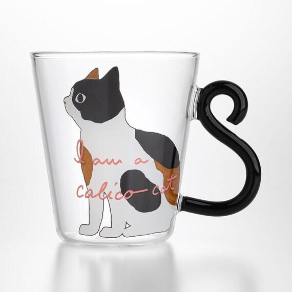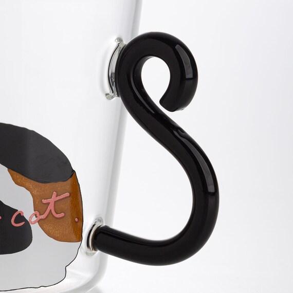 1. 持ち手が猫のしっぽになっているのがポイントです! 黒猫と三毛猫デザインのマグ