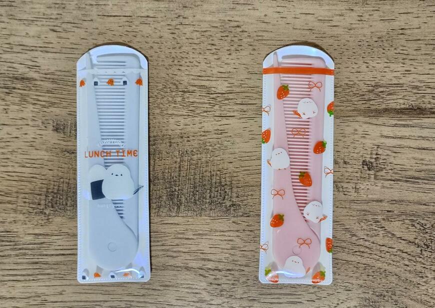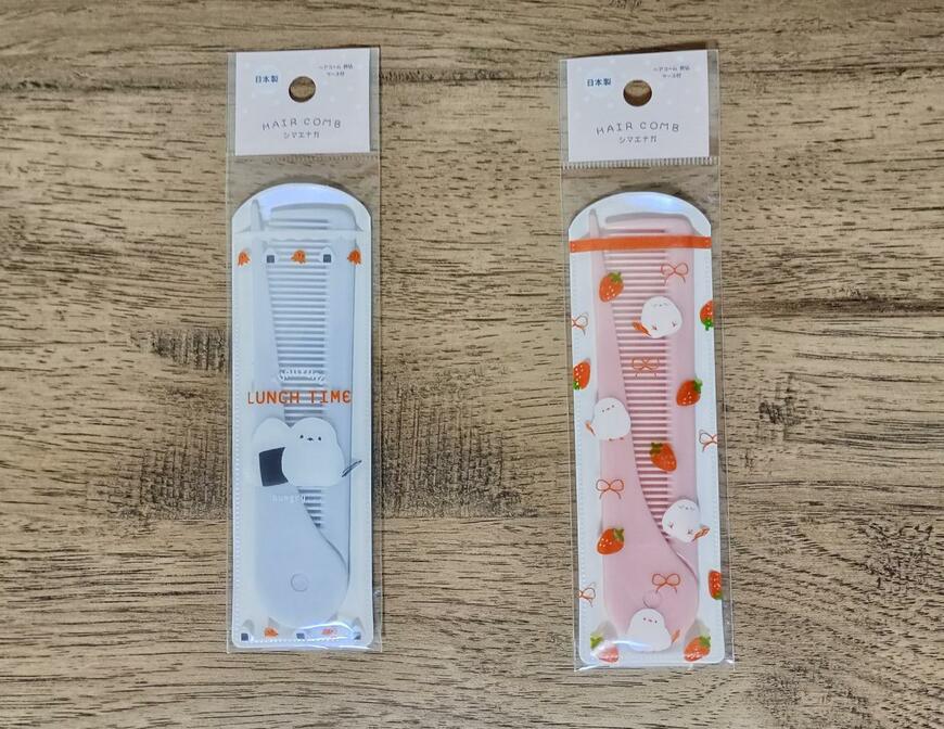 セリアでは、シマエナガデザインのアイテムが多数販売されています。2023年11月にも、写真のような「ヘアコーム」が販売されているのを発見しました。