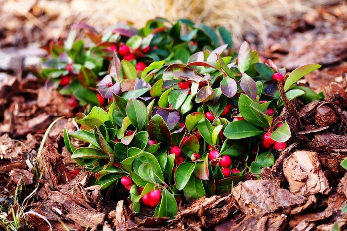 秋から冬はキュートな赤い実が、初夏にはベル型をした白い小花が楽しめるチェッカーベリー。