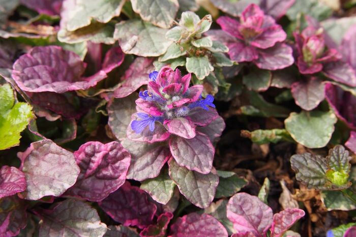 耐陰性が強いアジュガは、日陰の庭に人気のグランドカバープランツ。