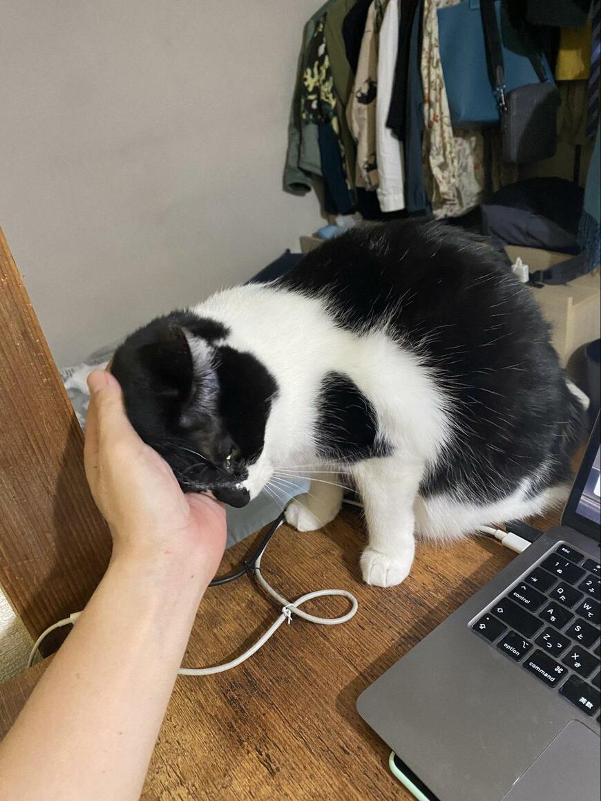 「パソコン作業してるのにずっと頭を撫でさせられる…」「嬉しい」というコメントとともに投稿されたのは、1枚の写真でした。