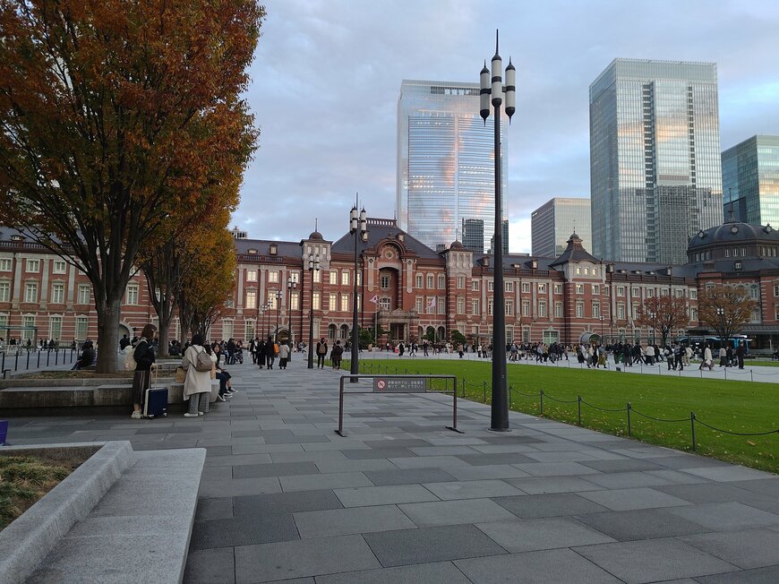 ここからは作例を紹介しながら、Zenfone 10のカメラの特徴をみていきます。最初の作例は、夕方の東京駅舎。淡い色の空、駅舎の茶、手前の芝生と要素が多い1枚ですが、空の淡さはエモーショナルに、駅舎はパキっとした色味に、芝生は生き生きとした緑に、とそれぞれの良さがうまく表現できているのがよく分かります。