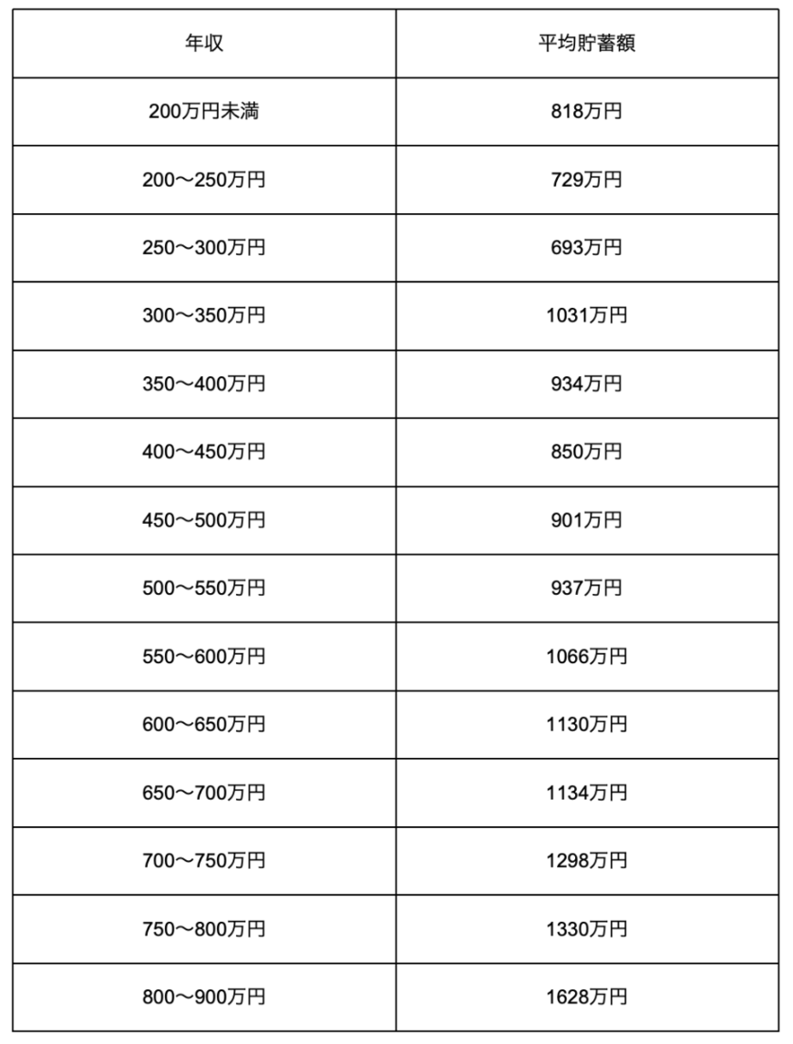 ただし、年収300~350万円の人の平均貯蓄は1031万円となっており、年収350~550万円のゾーンの人よりも貯蓄額が多いことが分かります。