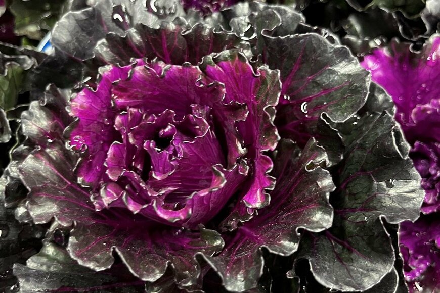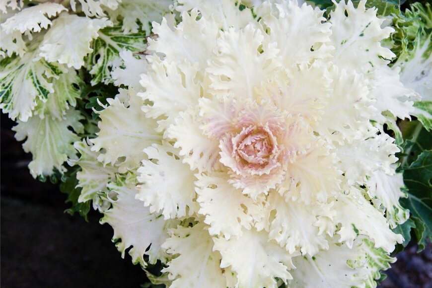 花のように開く葉がオシャレなハボタン。品種が豊富で、さまざまなテイストの寄せ植えに重宝します。ブラックカラーのハボタンはシックな寄せ植えに、バニラカラーや葉脈がピンクの品種はロマンチックテイストにおすすめです。