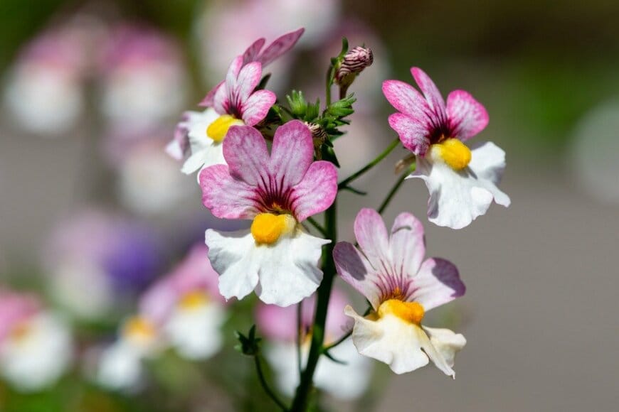カラフルな花色がオシャレなネメシアは寄せ植えに使いやすい植物です。小花が集まって花房を作るので、単色でも大変華やかです。