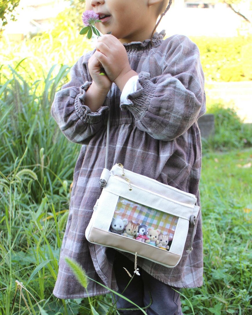 このかわいらしいポシェットは、なんと@clay_and_playさんの手作り!以前ダイソーで買ったサコッシュを中に入れていた人形ごとなくしてしまい、落ち込む娘さんのために手作りしたのだとか。