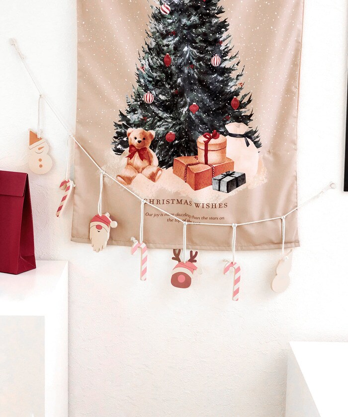 壁やカーテンレールなどに飾って、いつもの部屋を手軽にクリスマスモードにチェンジ!キャラクターの目が隠れているデザインも味があっておしゃれですね。