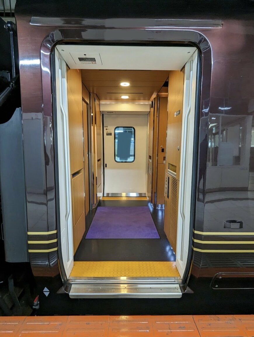 そこに映っているのは、特別車両E655系「なごみ(和)」の乗降口。荘厳な雰囲気があり、乗り込む時につい息を呑んでしまいそうです。