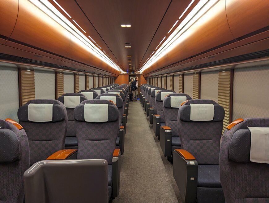 外観だけでなく車両の中も高級感あふれる内装になっています。こんなにも素敵な空間だと長時間の移動も苦にならないでしょうね。