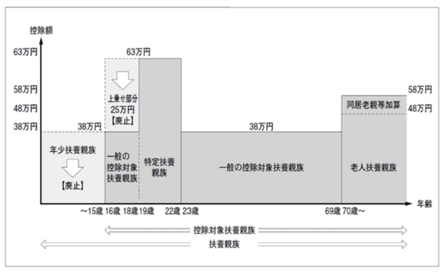 - 年少扶養控除:16歳未満の扶養親族に対する控除が廃止