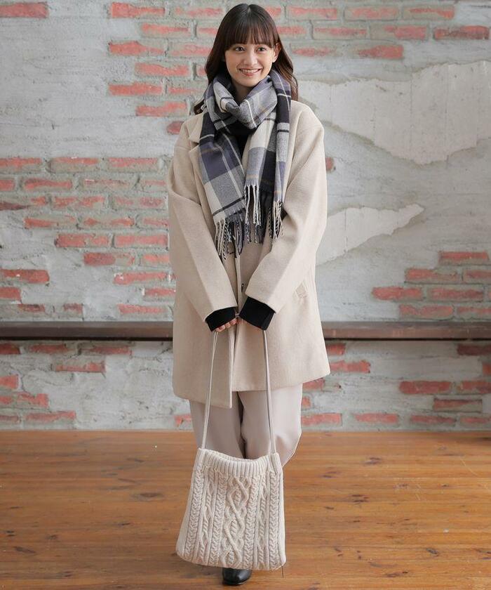 その中でも、特に人気なのが「大チェック柄マフラー」です。トレンド感のあるチェックがおしゃれなアイテムです。
