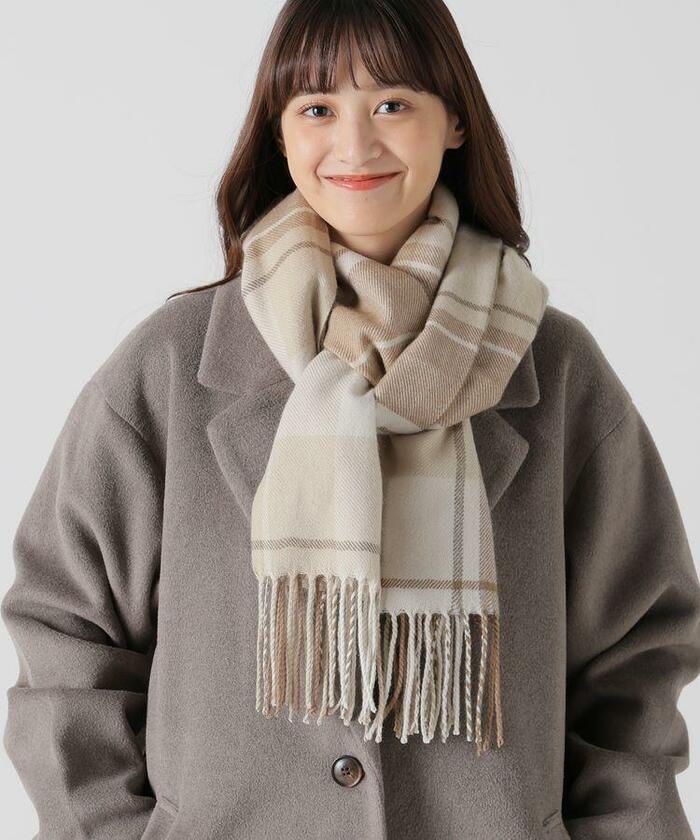 4. ハニーズの「大チェック柄マフラー」は、冬のコーデをより素敵に見せてくれそう! 色違いでそろえたい