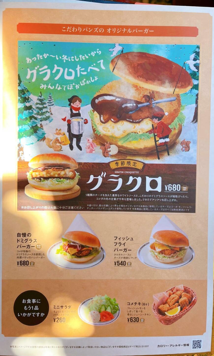 サービス精神にあふれているコメダ珈琲店は、メニュー写真よりも実物の商品が大きいことでも人気を集めています。さっそく、冬の定番バーガーを味わいに、お店に足を運びました。