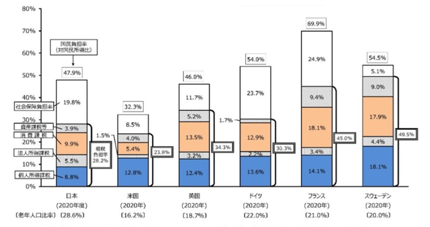スウェーデンなどの北欧諸国は社会保障制度が充実しており福祉大国といわれていることから、国民負担率も高くなると考えられます。