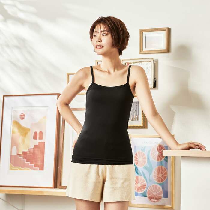 大手化粧品会社ファンケルの商品にも使われている成分「セラミドヴェール」を配合した糸を使用しているのが特徴的な保湿力抜群のキャミソール。50回洗濯しても高い保湿効果をキープするので、乾燥に悩む秋冬にぴったりのアイテムです。