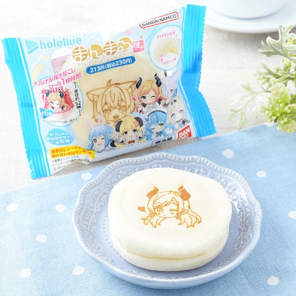 「「ホロライブ」コラボのまんまる焼きです。中のクリームはカスタード味です。焼き印は全6種、シールは全6種です。※焼印とシールの組み合わせはランダムです。[ファミリーマート限定]」