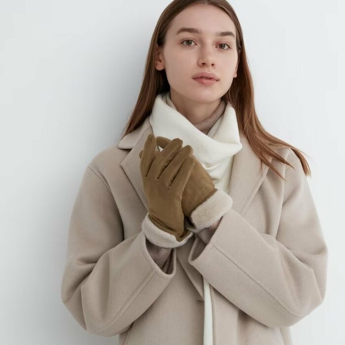 上質感のあるスウェードタッチで幅広いコーデに映えるレディースグローブ。指の形がキレイに見えるようシルエットに工夫が施されており、冬の手元を美しく演出してくれます。肌面はヒートテックフリースなので、暖かさも抜群。オシャレしながら防寒できる、いいとこどりのアイテムです。