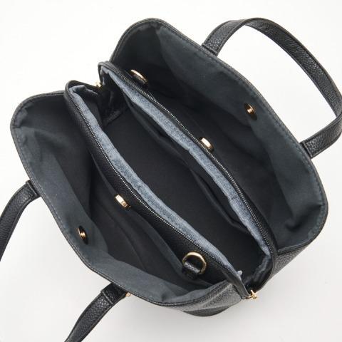 バッグは、メイン部分が整理しやすいように3つに分かれています。革風の生地も高級感があります。