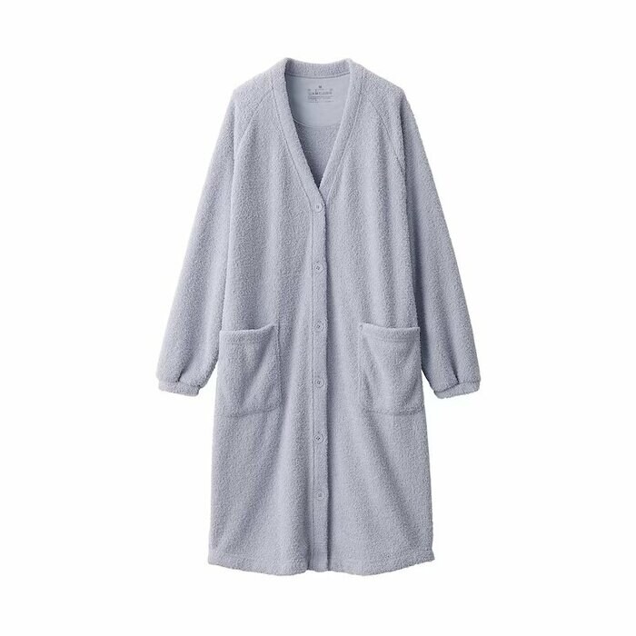 やわらかく、ふんわりとした肌触りのロングカーディガン。やや厚めの生地であたたかく、身体をやさしく包み込む、ゆったりとしたフィット感がルームウェアにぴったりです。袖口がゴム付きになっており、家事などで腕まくりした際も袖が落ちづらい仕様。サイドポケット付きでスマホを入れるのに便利です。コンビニまでのちょっとした買い物の際の羽織としても活躍します。