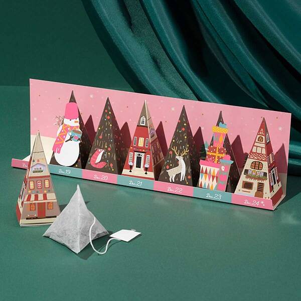 クリスマスモチーフのパッケージに入った紅茶のティーバッグです。12月18日から12月24日の7日間、楽しくカウントダウンができます。ダージリン、アップル、キャラメルの3種類入り。紅茶を飲んだ後、ディスプレイとして飾ってもかわいいですね。