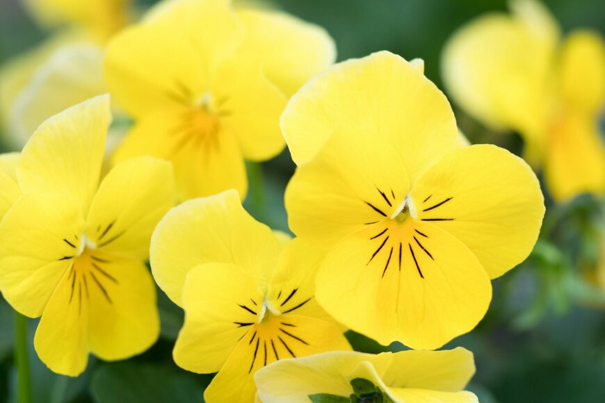 白・黄・紫・オレンジなど1色だけの花弁で、とくに模様も入らないシンプルな花。主張し過ぎず控えめな花姿で、周りに咲いている花の引き立て役に最適です。