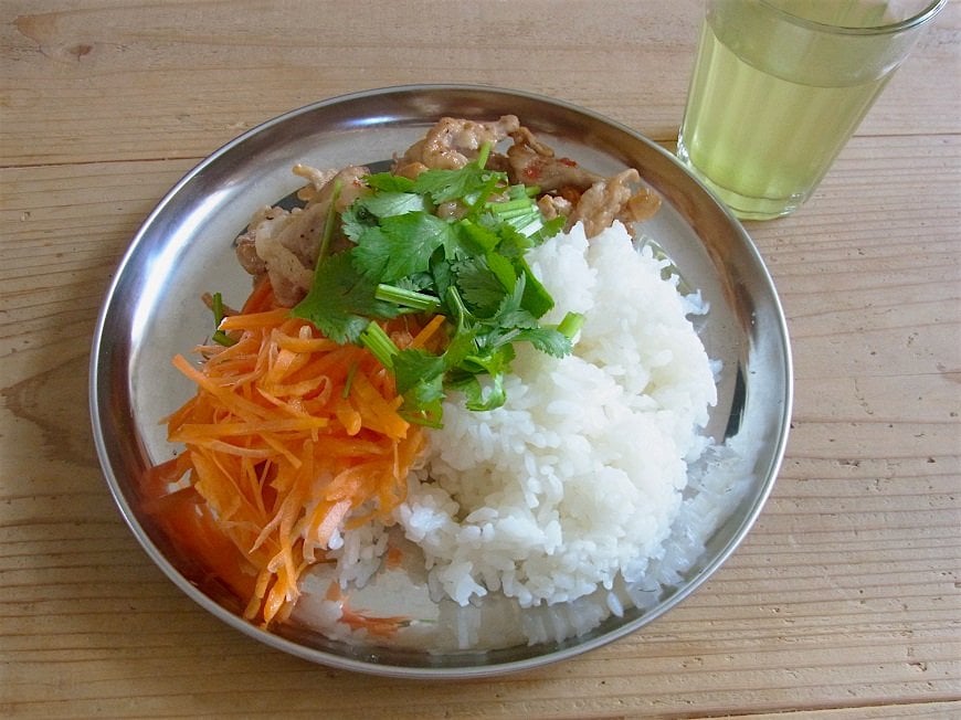 - 器にご飯を盛り、2と人参しりしりをのせ、パクチーや小ネギをちらす。