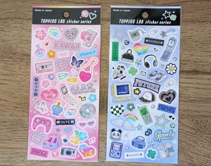2000年代に流行したアイテムがシールになっています。デザインは、2種類あります。この時代に青春を過ごした方は、懐かしい気持ちになれそうなアイテムです。