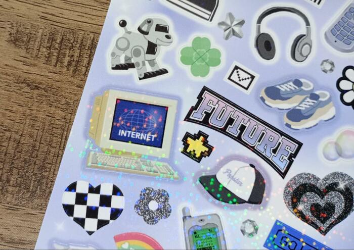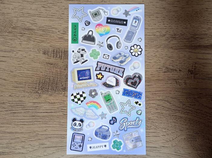 現在ではほとんど姿を見ないMDもシールになっています。どれも懐かしいものばかりです。平成時代に青春を過ごした方は、全部のアイテムがわかるかをチェックしてみてもいいかもしれませんね。