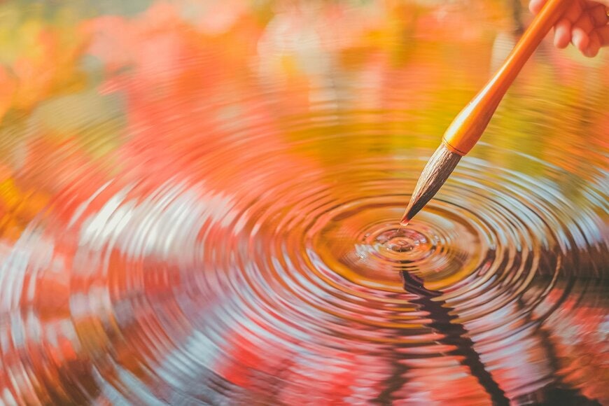 そこに映っているのは、綺麗に色づいた美しい紅葉。まるで鏡に映されたように反射しており、思わず息を呑む美しさです。