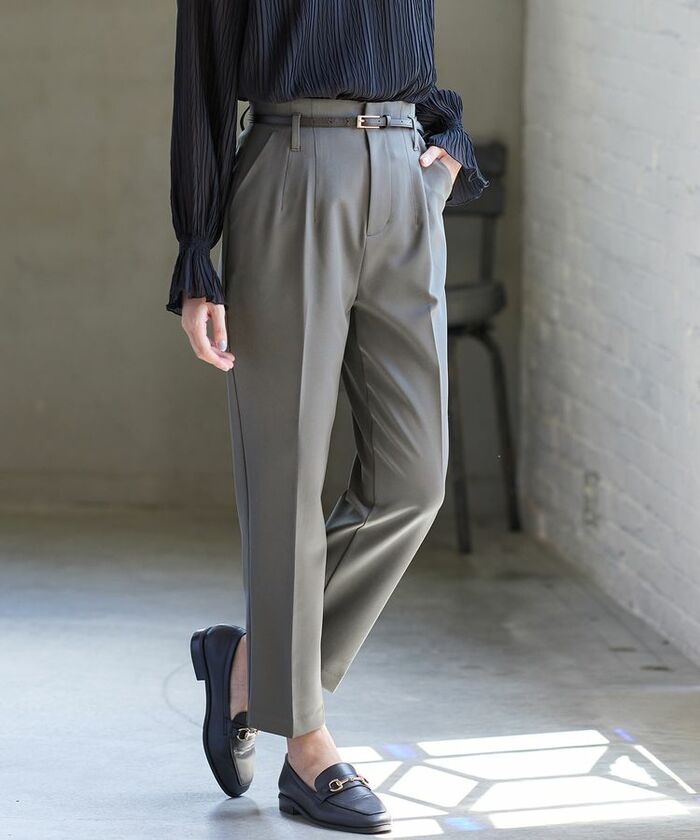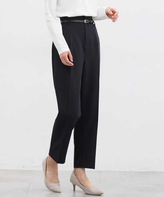 脚をキレイに見せながら、オフィスでも使えるきちんと感のある上品なパンツ。