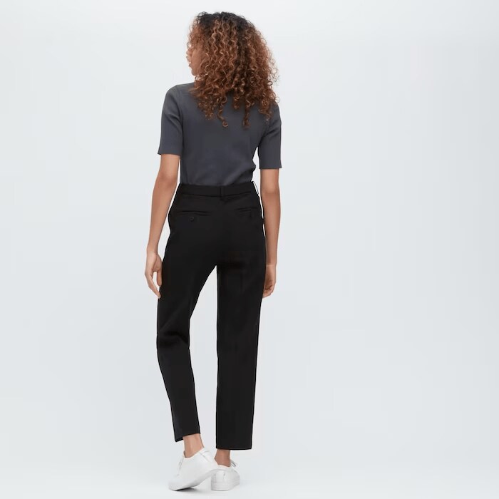こだわりのストレートフィットシルエットは、脚を長く美しく見せてくれるだけでなく、トップスを選びません。ビジネスシーンや上品なスタイルに最適です。