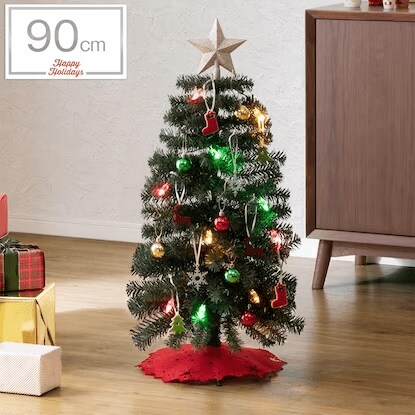 120cmのツリーと、デコレーション用のオーナメントやLEDライトなどが一式揃ったクリスマスツリーです。あらかじめ必要なものがすべて揃っているため、これさえあればクリスマスツリーが完成します。