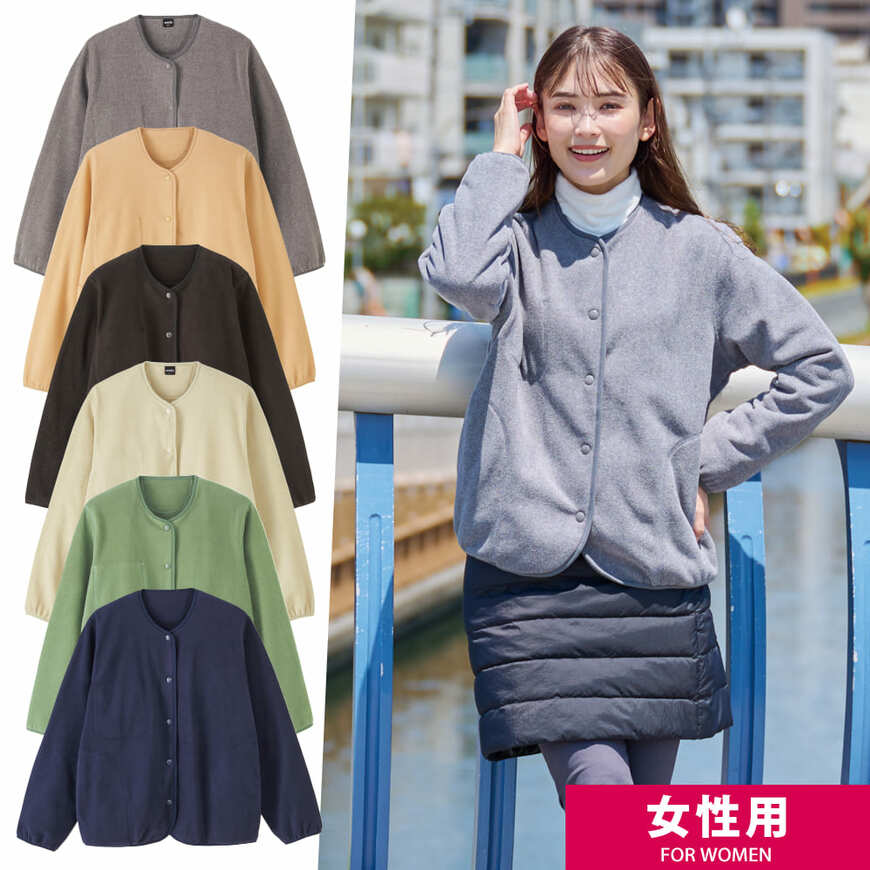 「レディースマイクロフリースカーデガン」もカラーは6色から選べます。カーデガンとしても、コートのインナーとしても使用することもできますよ。