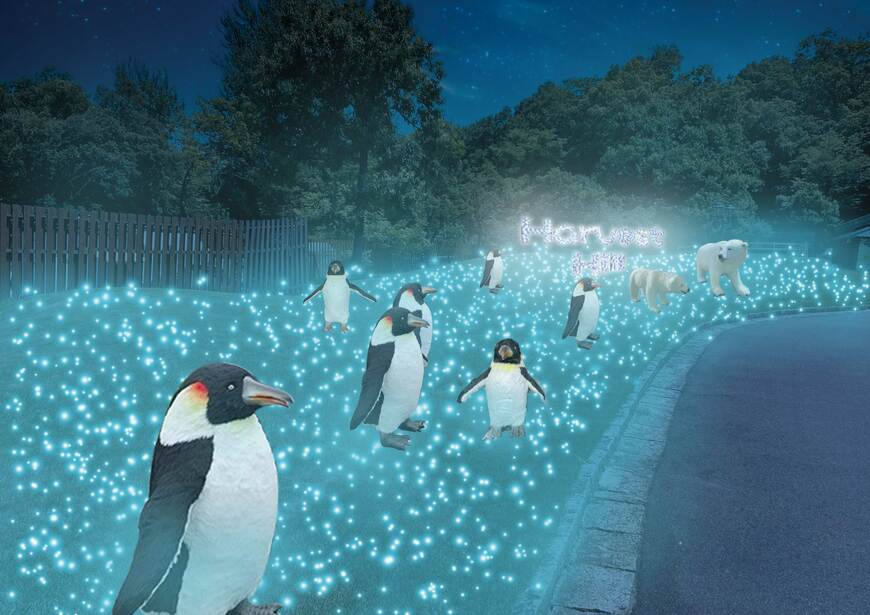 街のエリアを使い、花壇を煌びやかなイルミネーションで埋め尽くしたり、ヤマモモの巨木を飾ったりして公園を華やかに演出します。
