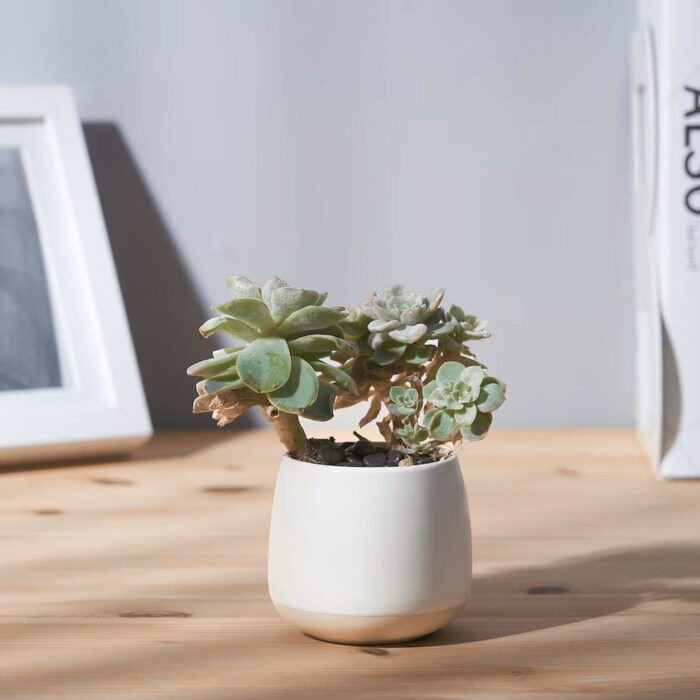 ミニサイズですので、100円均一に並んでいるサボテンや多肉植物、観葉植物などと組み合わせると、プチプラでオシャレなインテリアグリーンに仕上がりそうですね。