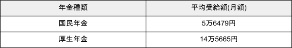 国民年金は月額平均5万6479円、厚生年金は14万5665円(国民年金を含む)で、国民年金は厚生年金よりも約9万円少ないことがわかります。
