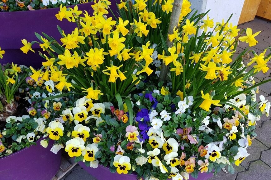 寄せ植えは花がキレイに咲いてこそ楽しめます。寒い時期ですが、花々のお世話はしっかりとおこないましょう。