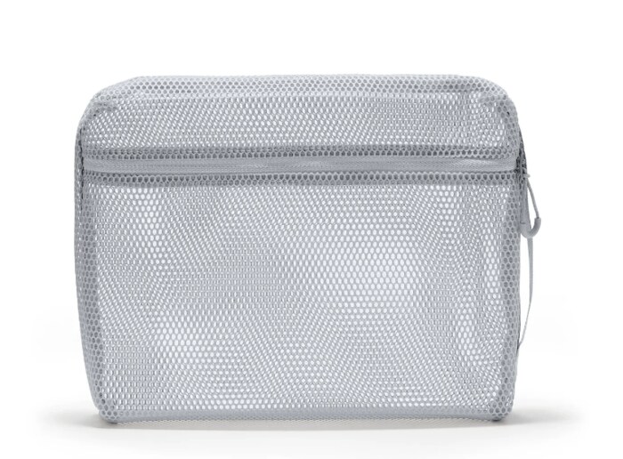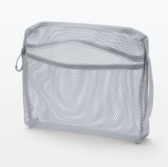 マチがあり、かさばる衣類やタオル・スキンケアアイテムなどの日用品を収納できるケース。メッシュ素材ですが自立しやすいため、かばんの中で立てて収納することも可能です。サイドには持ち運びがしやすいようハンドルがついており、ポーチごと移動したいときもラクに運べます。Lサイズのほかに、SとMサイズもありますよ。