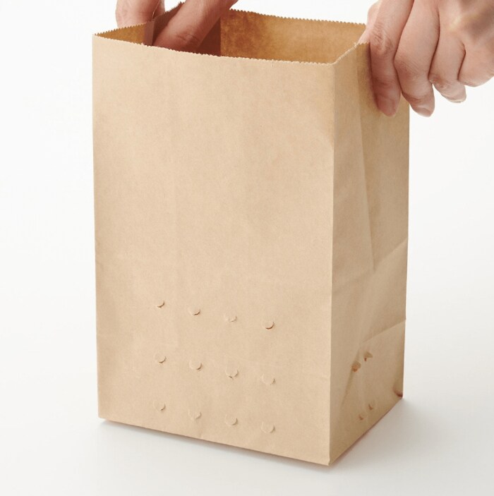 シンクに置いて使用する、紙製水切り袋。水濡れに強く、料理中に出た生ごみを入れても簡単に破けません。三角コーナーの代わりに使えば、溜まった生ごみを触ることなく袋ごと捨てられます。素材がクラフト紙のため、シンプル&おしゃれであるのに加え、中身のごみが見えないのもうれしいですね。