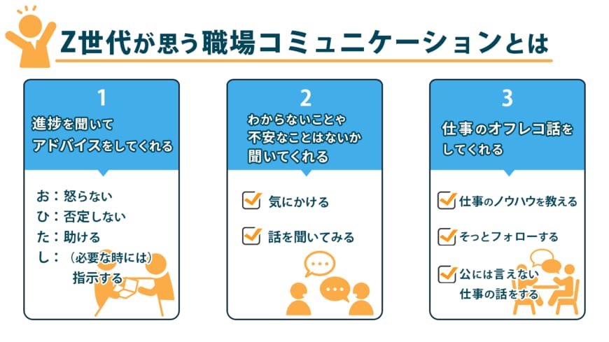 Z世代が相談するのには、何かしらの理由があります。そのため、Z世代が「ほうれんそう」をしたときには、まずしっかり聞いてほしく、そのうえでアドバイスがほしいのです。