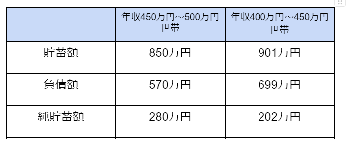 同様に年収450万円〜500万円世帯の負債額も確認すると、平均で「699万円」でした。