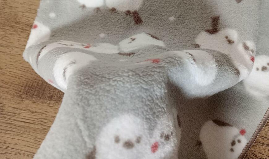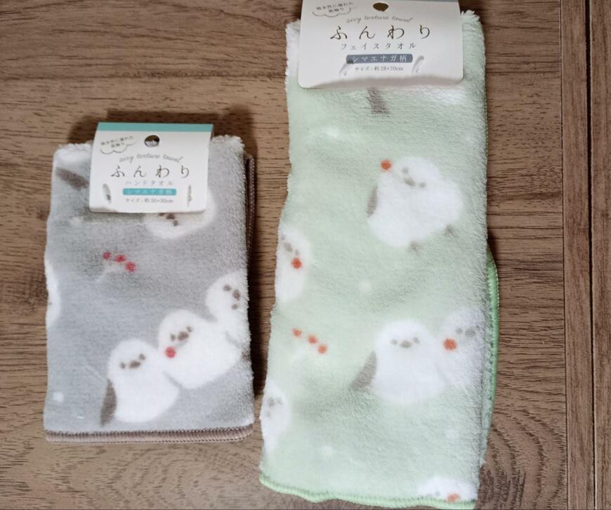 1. セリアでシマエナガデザインのタオルを発見! ふわふわ素材で触り心地も抜群です