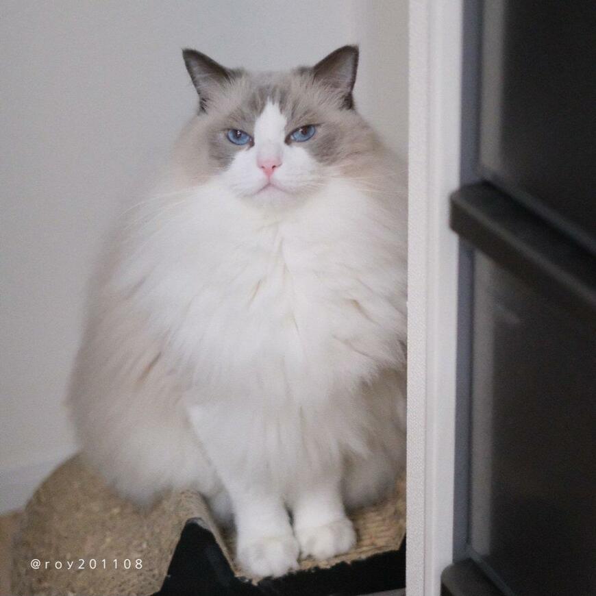 Xでたくさんの注目を浴びているのは、ラグドールのロイくん。このときのロイくんはご飯待ちをしていたようで、両手を揃えちょこんと座っていました。