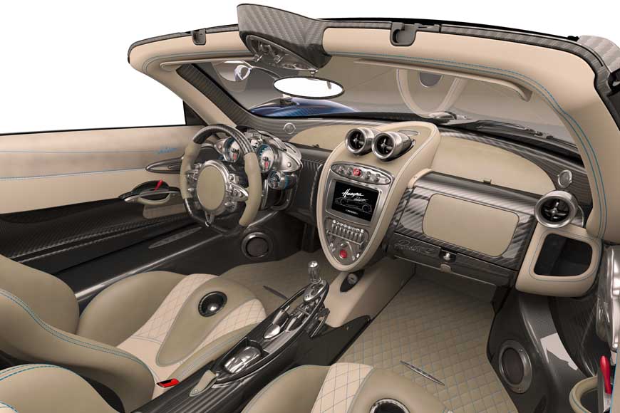 Carbon-Titaniumを自動車業界で史上初めて採用したのが同社のゾンダ・チンクエだ。この新世代の複合材は屈曲性に優れており、航空業界やF1で使われている最先端の複合材よりも軽量。また、サスペンションの素材には、軽量アルミニウム合金のHiForgを採用。これらの素材をウアイラ・ロードスターに使うことで、軽量化を達成できたのだ。
