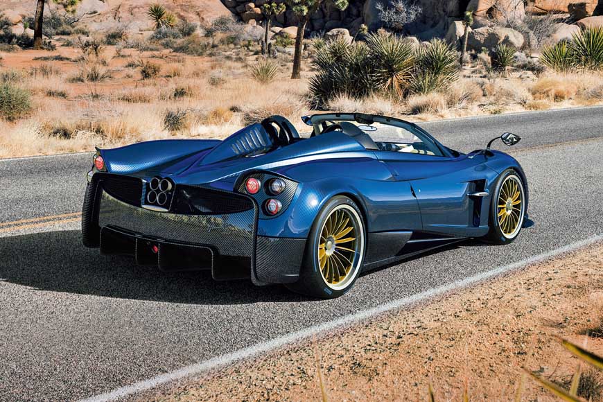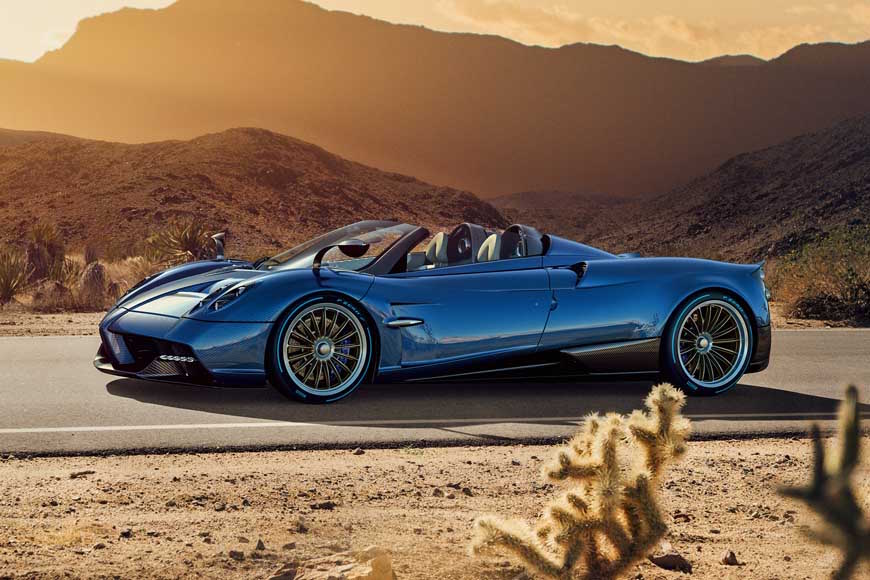 エンジンは、メルセデスAMGがパガーニのために開発したものを搭載。ロードスターに似合うエンジンサウンドを生み出すためにも、排圧を低減するように排気システムを研究し、最適なスロットルレスポンスを実現させている。最高出力は775ps/6200rpm、最大トルクは102kgm/2400rpmと、クーペよりもパワフルになっている。