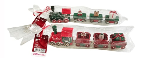 サンタクロースやプレゼントが乗っている、機関車モチーフの木製グッズ。こんなにかわいい&高クオリティなのに220円(税込)は驚きですね。玄関先やツリーの前に、ちょこんと1つ置きたいアイテムです。